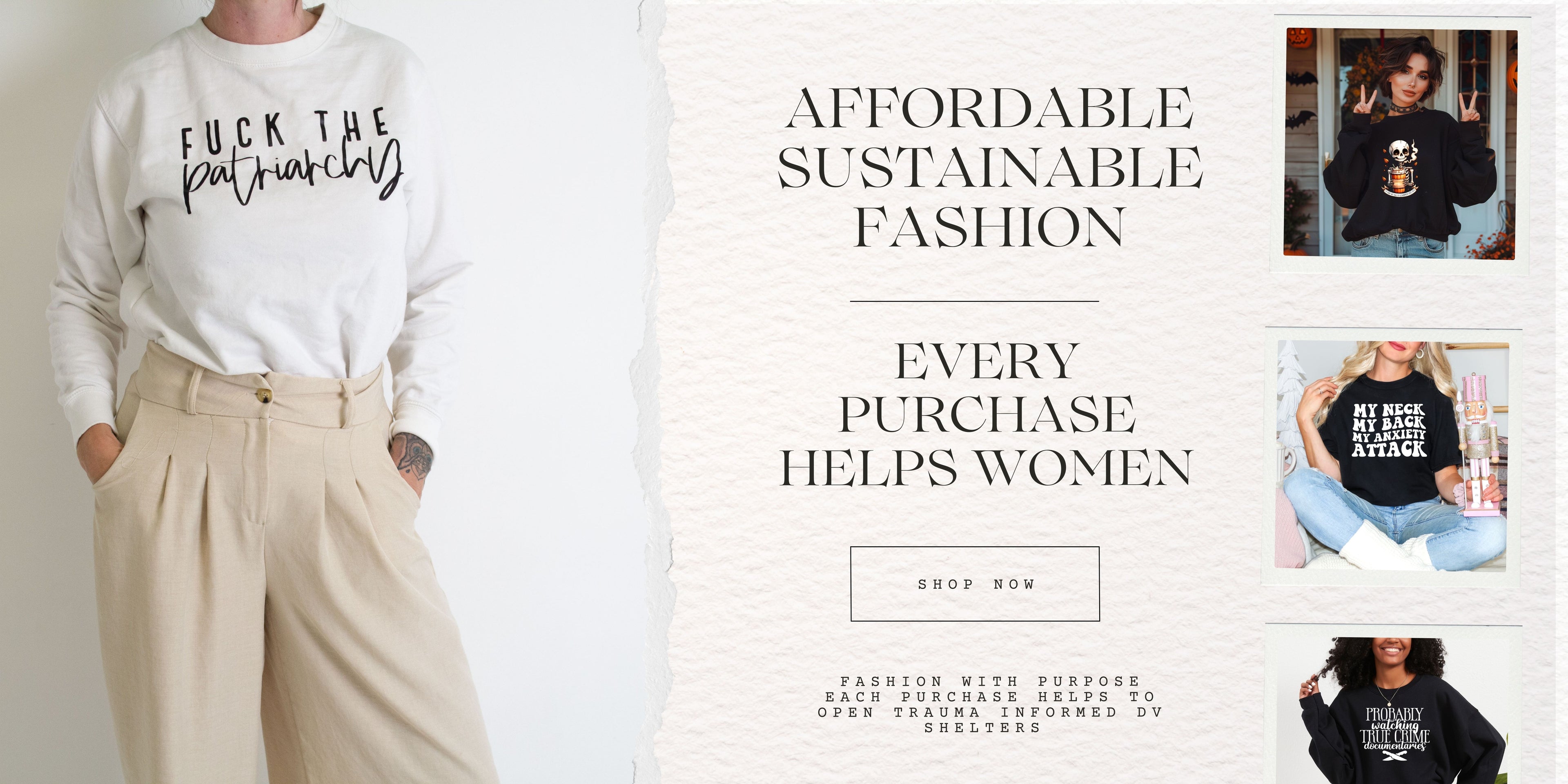 We’re not here to play nice with the patriarchy. We’ve had enough. That’s why every single purchase you make helps fund long-term, safe homes for women and their children across the UK - not the kind that throws you out after six weeks, but refuges built with proper support. We’re talking mental health services, legal help, trauma care, school supplies, and safe spaces for kids and pets - real villages where women can truly rebuild their lives.