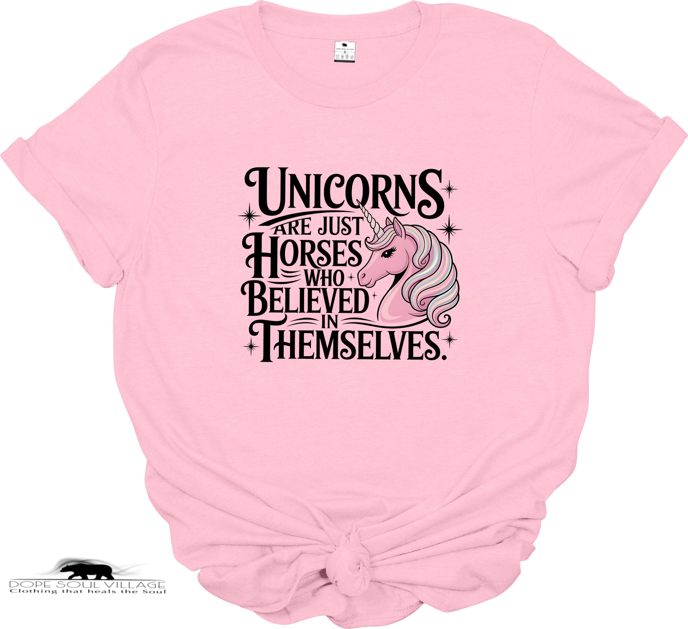 Fun, uplifting “Unicorns Are Just Horses That Believed in Themselves” design 🦄